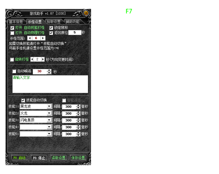 6:魔剑连击:Z助手设置:旋风斩/玄月斩 + 霹雳回旋斩 + 火袭剑